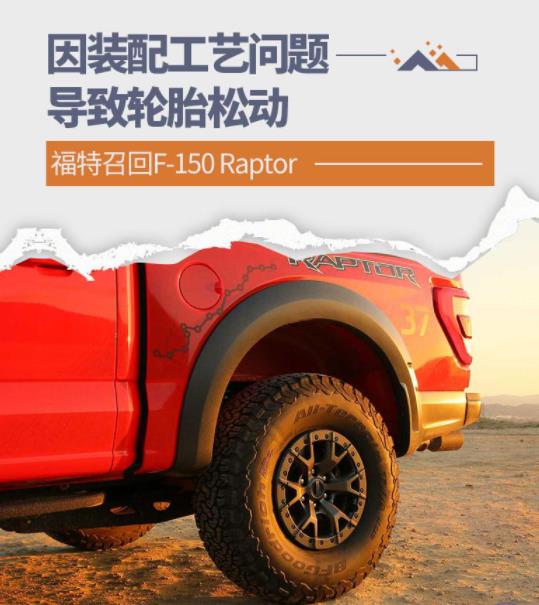 近日,网通社从海外媒体处获悉,福特正在召回 2022 年生产的 F-150 Raptor,美国国家公路交通安全管理局 ( NHTSA ) 发布的公告称,部分 F-150 Raptor 车轮的螺母因为装配过程中的故障而导致松动,会发生脱落的可能。此次召回涉及 1500 余辆,这些车型均选配了 37 英寸轮胎。